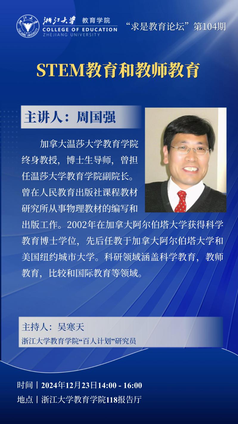 “求是教育论坛”第104期丨周国强:STEM教育和教师教育