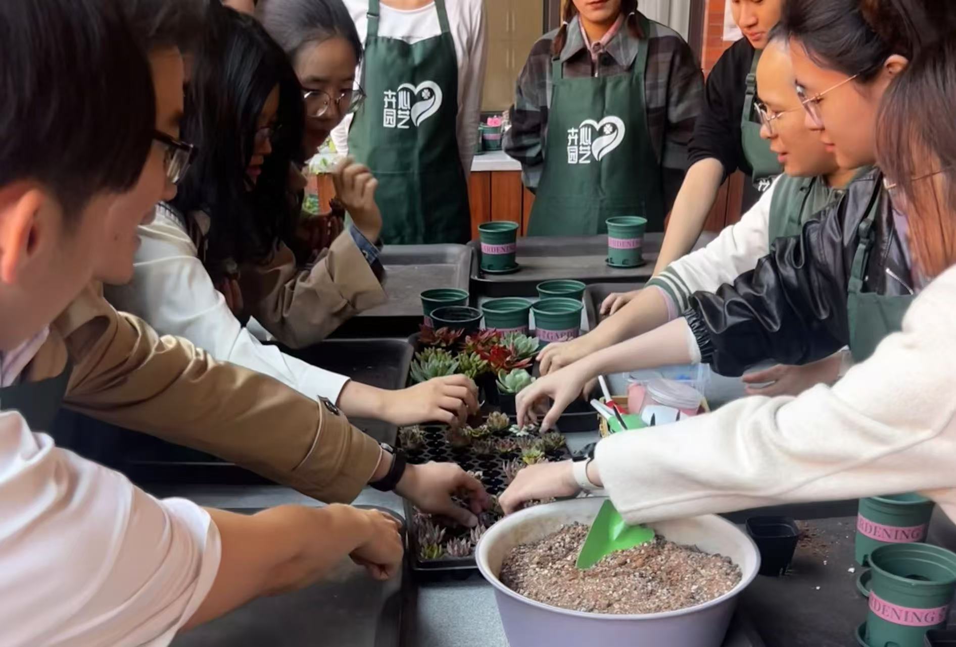 当一盆盆造型各异的多肉完成后,大家内心充满了成就感,一边亲手制作,一边互相交流,来参加活动的同学们既舒缓了自己在忙碌学习生活中的心理压力又收获了多肉植物知识和种植方法,感受到自己种植多肉的乐趣和成就感,最后带着自己亲手栽培的多肉结束了此次活动。
