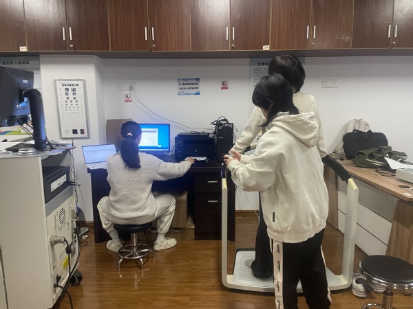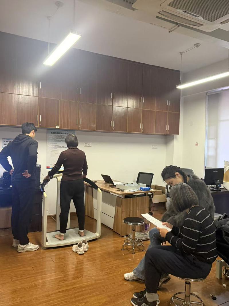交流活动正式开展前,体育学系教工党支部党员教师对学生党支部成员进行了仪器操作和健康数据分析的培训,丰富了学生的健康知识储备,还巩固了体适能相关专业知识基础。交流活动期间,由学生党支部成员担任主试者,运用SECA人体成分分析仪为协会成员测量体脂数据。该仪器具备医疗资质和高精度测量能力,能够科学测量人体肌肉脂肪含量、细胞质量与数量等重要指标,为测试者的健康管理和改善提供科学依据与数据支撑。活动期间,学生党员详细记录了参与者的健康数据并与每位参与者进行了深入交流,根据测量结果为大家提供了个性化的健康建议和体适能提升计划。