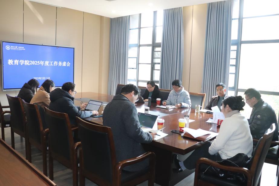 2月13日,教育学院召开2025年度工作务虚会,深入学习贯彻习近平总书记关于教育的重要论述及《教育强国建设规划纲要(2024—2035年)》精神,贯彻落实任少波书记在学院2024年度党员中层领导干部民主生活会上提出的“着眼更高远、立足更坚定、改革更大胆、做事更求是、守纪更严谨、引领更有力”指示精神,谋划学院下一步发展战略与策略,擘画学院“十五五”发展蓝图,研究讨论2025年工作重点。
