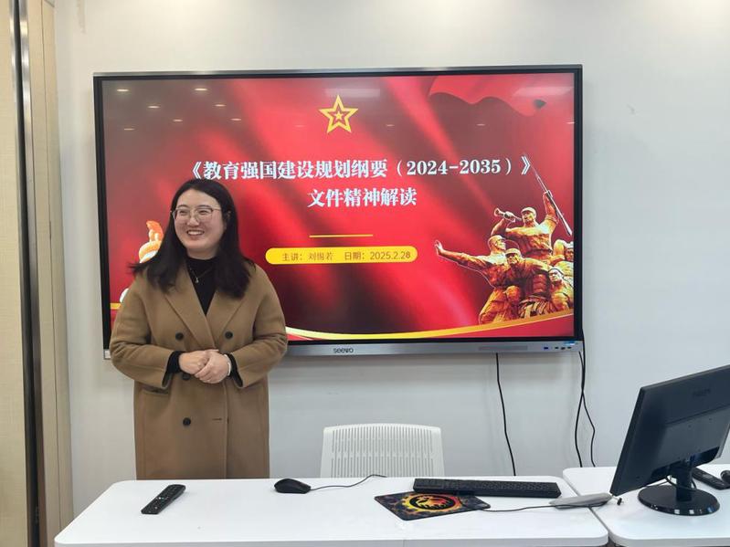 接着,在学习分享环节,刘惕若同志作《教育强国建设规划纲要(2024-2035)》文件精神解读,结合高等教育学专业特色,系统讲解了文件出台背景与意义、总体要求与目标、重点任务、实施保障以及落实和展望。