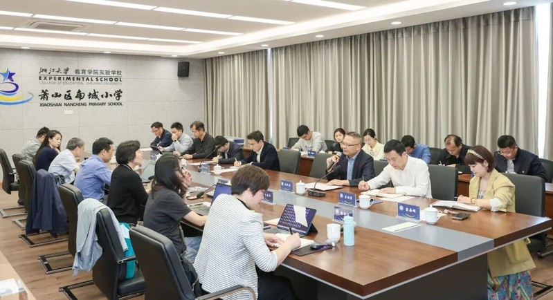 4月8日上午,浙江大学教育学院与萧山区南城小学共同举行年度总结报告暨新一轮成长任务发布会。教育学院副院长孙元涛、李艳,蜀山街道教卫民政副主任郦阳栗,区教育局义务教育科副科长丁燊杭,湘湖教育指导中心书记(主任)赵狄宏等领导出席,会议由南城小学执行副校长翁嘉媚主持。