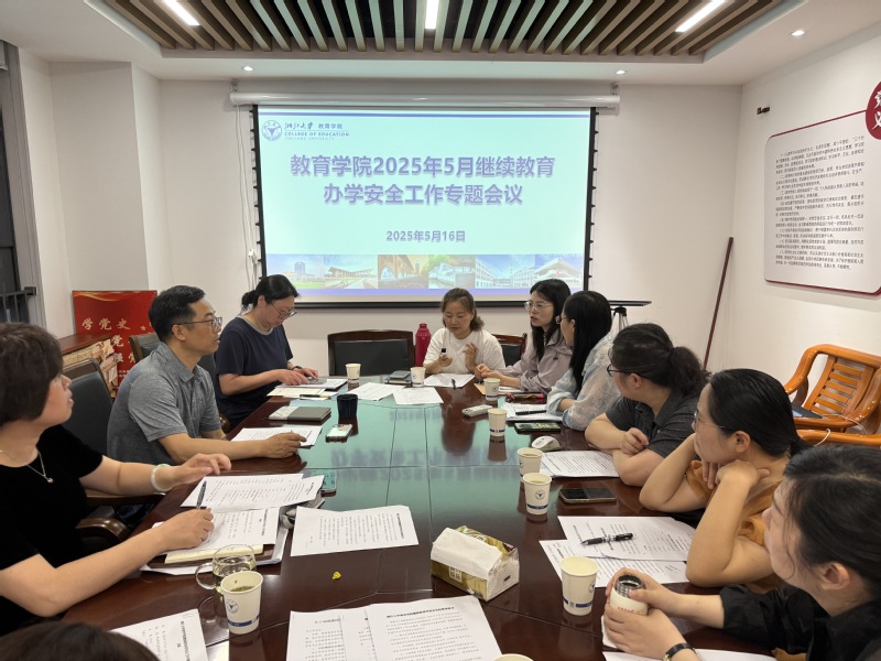 5月16日下午,教育学院继续教育办学安全工作专题会议在学院210会议室召开。学院副院长孙元涛、继续教育中心的全体老师与会,会议由中心主任陈红玉主持。