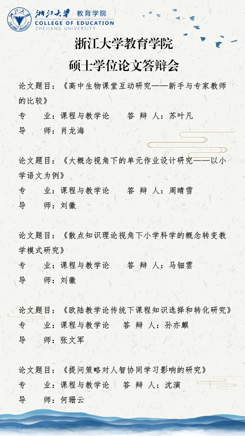 【答辩】课程与教学论硕士学位论文答辩会