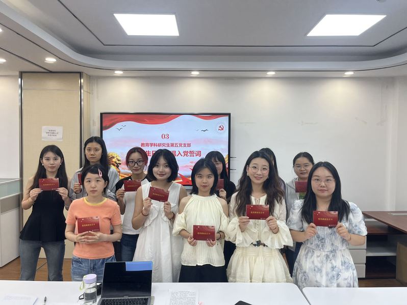 会议讨论了教研五张可滢同志的转正事宜以及杨丽同志的发展事宜。全体党员以重温入党誓词的方式,为3至6月入党的16名同志集体庆贺“政治生日”,共同回顾初心、坚定信念。