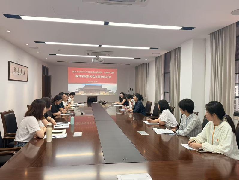2025年6月25日,教育学院机关党支部参与了浙江大学2025年党员基本培训第一次集中大课,共同学习教育部党组书记、部长怀进鹏主讲的“深入学习贯彻习近平总书记关于教育的重要论述 落实全国教育大会精神”专题报告视频课程,并开展交流讨论。会议由支部书记崔倩老师主持。