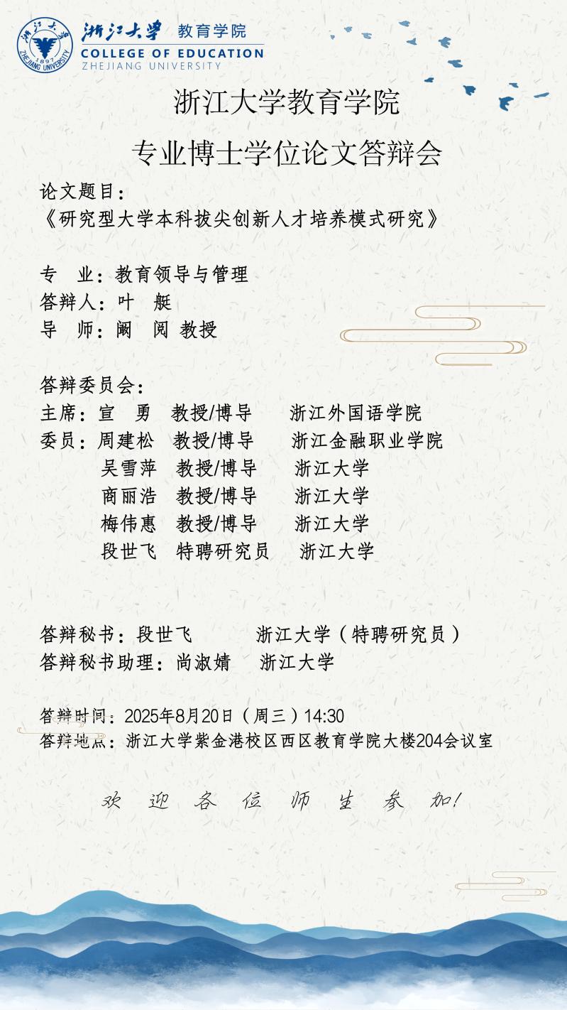 【答辩】教育领导与管理领域博士学位论文答辩会