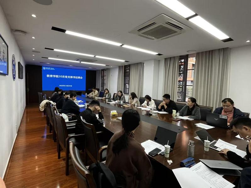 10月24日,教育学院召开10月党支部书记工作例会,集中学习《习近平谈治国理政》第五卷和党的二十届四中全会精神,部署近期党建重点工作,并进行样板支部创建经验交流。各师生党支部书记及部分支委参会。会议由学院党委书记王芳主持。