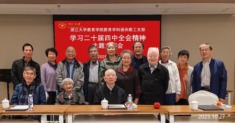 10月27日,教育学科退休教工党支部在杭州太保家园颐养社区组织开展“学习党的二十届四中全会精神”主题党日。支部十余位党员参与活动并探望了在社区疗养的支部老党员、97岁的金锵老师。