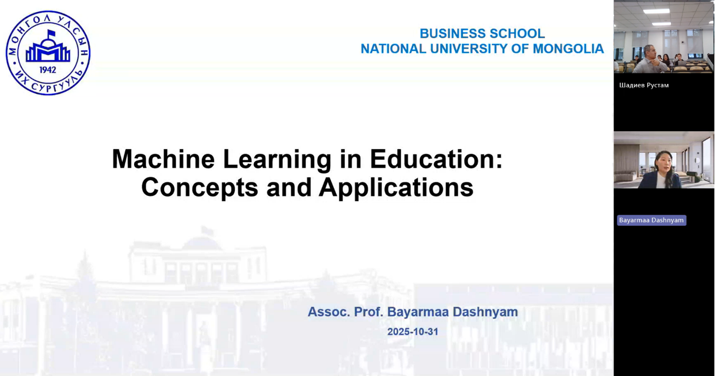 Dashnyam副教授为学生系统介绍了机器学习的基本概念与原理,阐释了传统编程与数据驱动模型的区别,讲解了监督学习、无监督学习与强化学习等核心类型,并结合数据准备、模型训练与性能评估等环节展开说明。她重点分享了机器学习在教育中的实际应用,如学习预测分析、个性化学习路径设计及教学与管理流程自动化等。