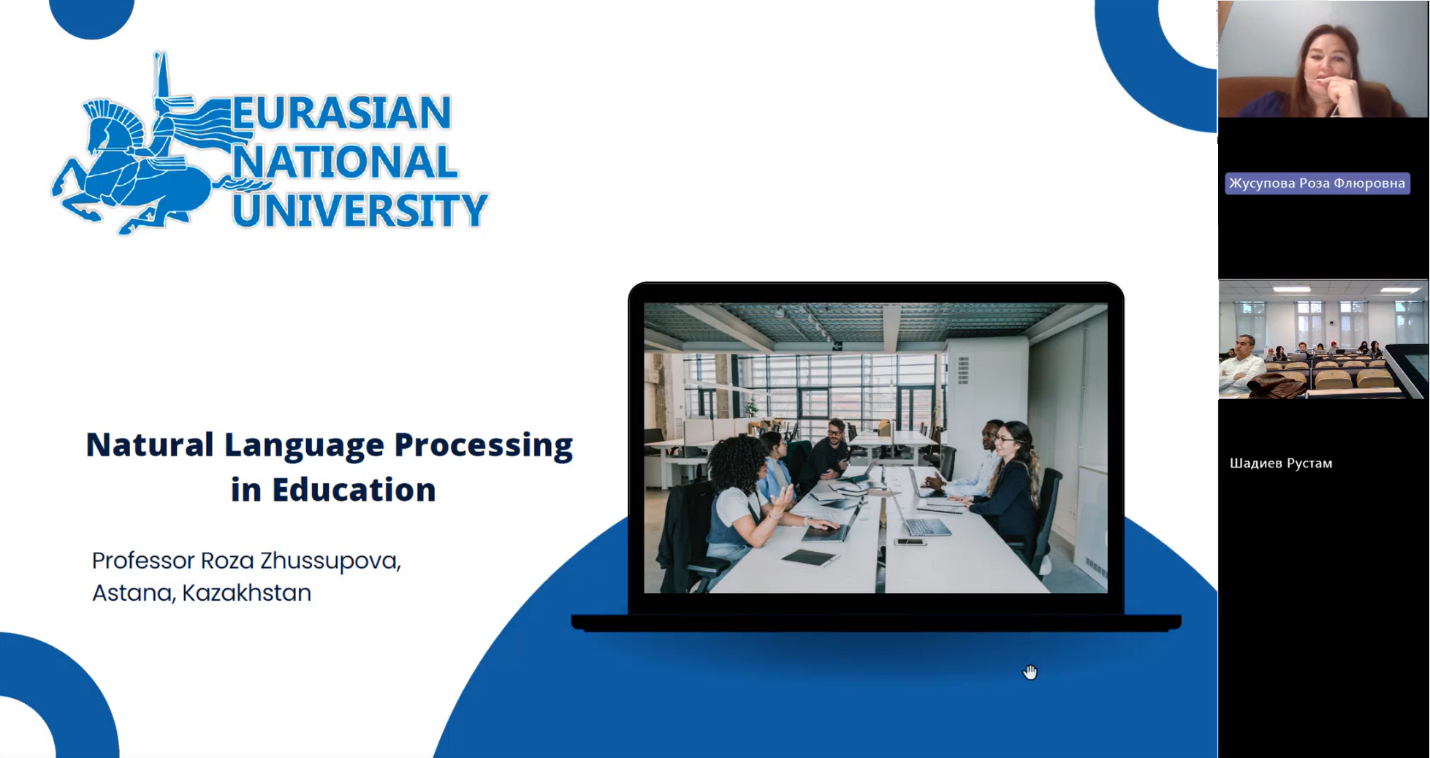 Zhussupova教授聚焦自然语言处理(NLP)技术在语言学习与跨文化教育中的作用,介绍了Grammarly、Duolingo与ChatGPT等AI工具在自动反馈与语言能力提升中的应用。她展示了中哈高校间的合作项目——学生利用AI反馈系统与360度虚拟现实视频开展跨文化交流,在互动中提升了语言能力、数字素养与文化理解。